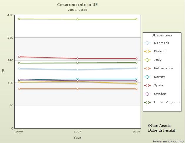Aproximadamente, uno de cada cuatro niños que nacen en España, lo hacen por cesárea. Esta cifra no ha dejado de aumentar desde los años ochenta. Sin embargo, no pensemos que se trata de un problema autóctono como pueda serlo el paro o el déficit público. En la mayoría de los países industrializados, el aumento ha sido similar o mayor que en España. Así, El Reino Unido, conocido por su tradición de atención al parto natural, se encuentra en cifras muy similares y Alemania nos supera en tres puntos. En Estados Unidos, referencia para todos en materia médica, es uno de cada tres partos el que se produce mediante cesárea. El panorama es diferente si miramos al continente africano. Los países en vías de desarrollo tienen cifras muy inferiores al límite del 15% impuesto por la OMS en 1985, naturalmente, a costa de una mortalidad perinatal inadmisible para nuestras exigencias.